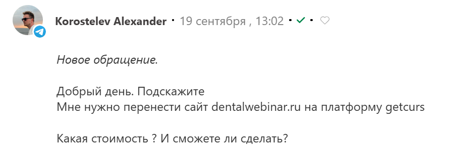 Поступила заявка на перенос сайта с платформы WordPress* на платформу GetCourse.