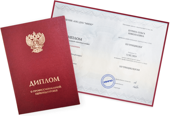 После успешного прохождения итоговой аттестации вы получите государственный диплом о профессиональной переподготовке установленного образца по программе «Нутрициология». Документ даёт право на ведение нового вида профессиональной деятельности и вносится в федеральный реестр документов об образовании.